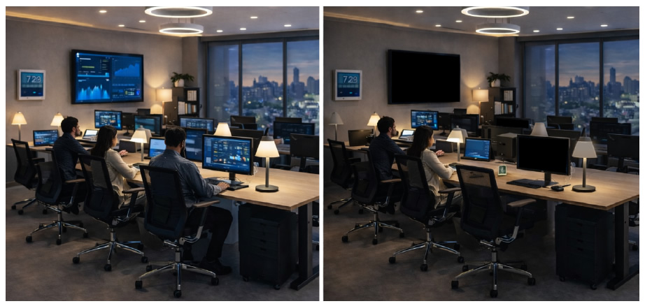 Sensores de Presencia: La luz solo se utiliza donde hay personas. Se acabaron las facturas astronómicas por luces encendidas en salas de juntas vacías.